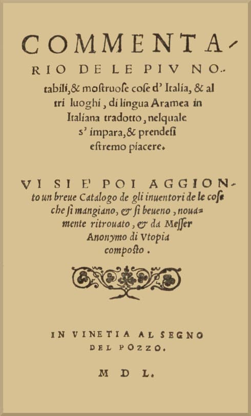 Commentario De Le Piu Notabili, & Mostruose Cose D'italia, & Di Altri Luoghi Di Lingua Aramea in Italiana Tradotto, Nelquale Si Impara, & Prendesi Estremo Piacere